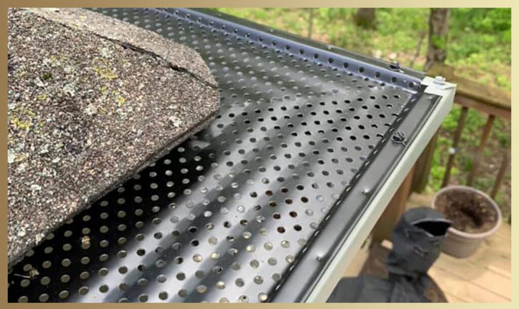 Shur Flo installs directly into your existing gutters and remains virtually invisible from the ground. Its patented perforated aluminum design filters rainwater while keeping out leaves, pine needles, and roof grit, minimizing maintenance and extending gutter life.