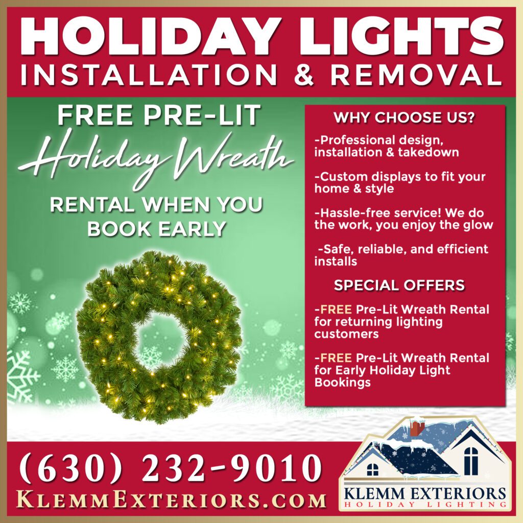 Don’t wait until the last minute! Installation spots fill quickly! Contact Klemm Exteriors today for your free holiday lighting estimate.